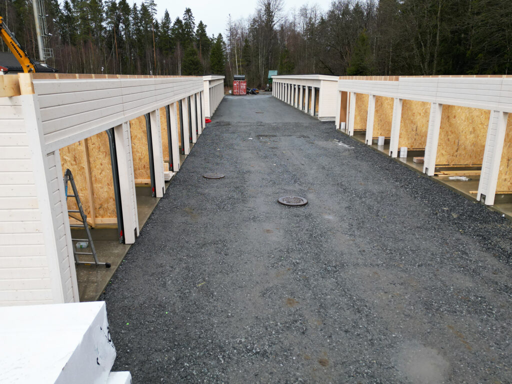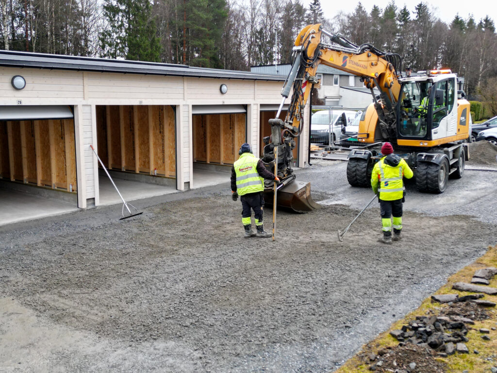 - Kjørearealet mellom garasjebygg skal også masseutskiftes. Nytt kjøresterkt bærelag etableres.