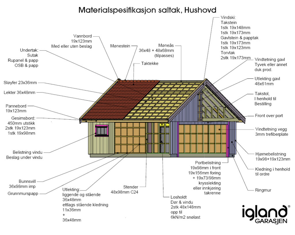 Bredder og lengder kan tilpasses behov. Fra minste enkelgarasje med en bredde fra 320 cm og lengder fra 600 cm og oppover.