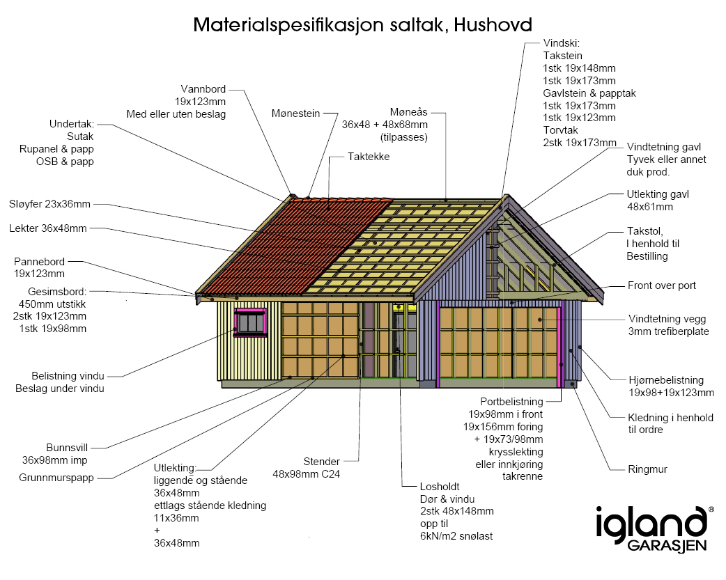 Garasjemodellen Hushovd er garasjen med det høyeste saltaket, som igjen fører til større utnyttelsesgrad på loftet. Den leveres oftest med takstoler på 36 graders takvinkel. Garasjen kan også leveres med andre takvinkler fra 30-45 grader.