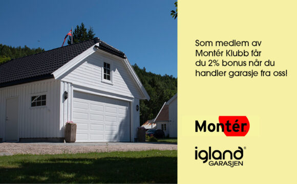 Som medlem av Montér kundeklubb får du 2% bonus når du handler garasje fra oss! Det betyr at du samler opp bonus og tjener poeng som du kan bruke på tilleggsprodukter du trenger i garasjen, eller gjøre et kupp på noe annet du trenger til boligen.